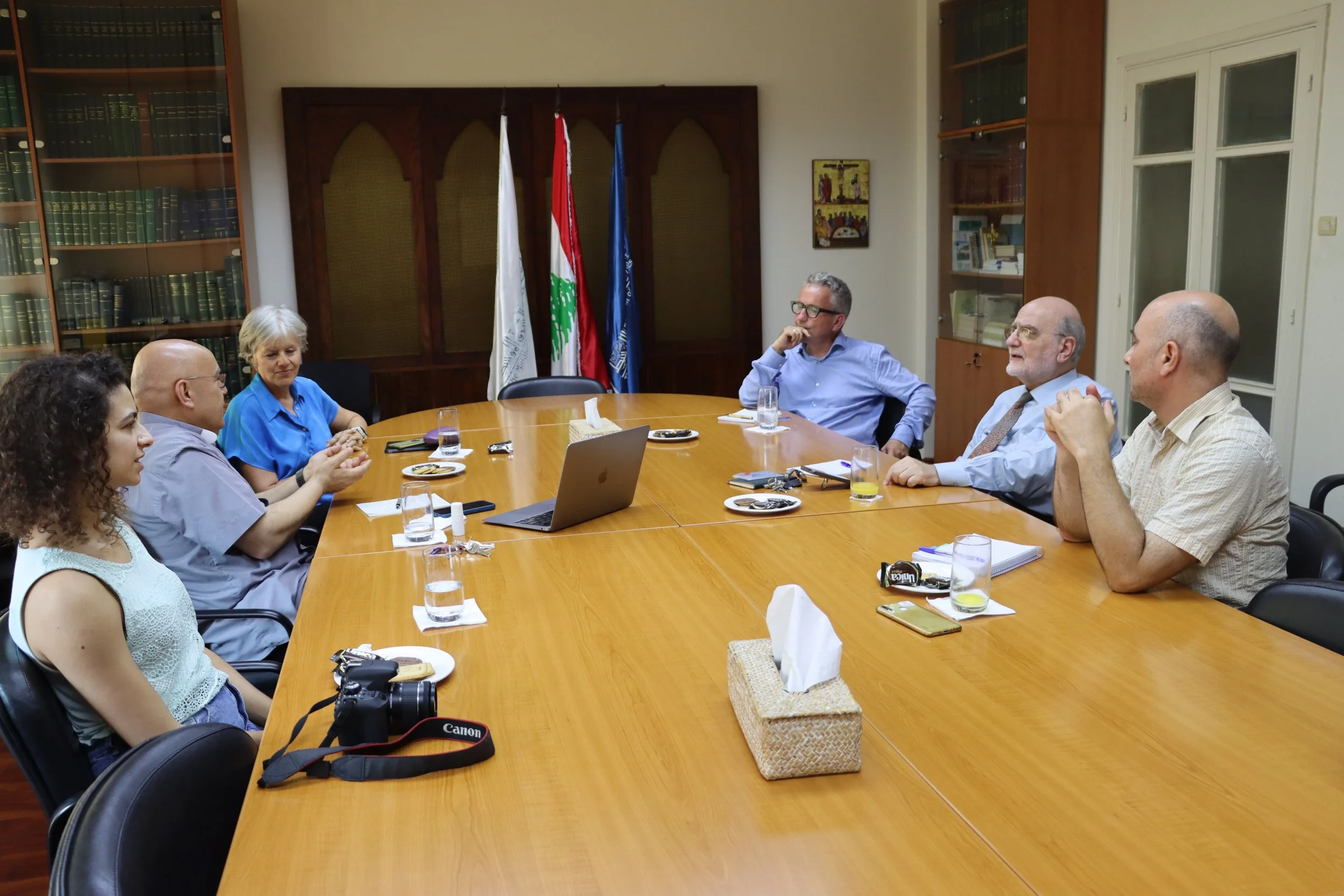 The delegation was received by the Secretary General of the Middle East Council of Churches Dr. Michel Abs, and Father Dr. Antoine Al Ahmar, Director of the MECC Theological and Ecumenical Department.