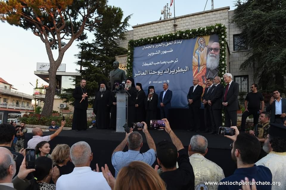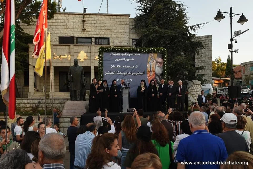 بداية، وصل غبطته إلى ساحة ضهور الشوير، مساء الجمعة 19 تمّوز/ يوليو 2024، حيث أقيم له استقبال رسمي وشعبي، وأُلقيت كلمات عدّة وجّهها كلّ من نائب رئيس المجلس النيابي دولة الرئيس الياس بو صعب، وسيادة المطران سلوان موسي، متروبوليت جبيل والبترون وما يليهما (جبل لبنان) للرّوم الأرثوذكس.