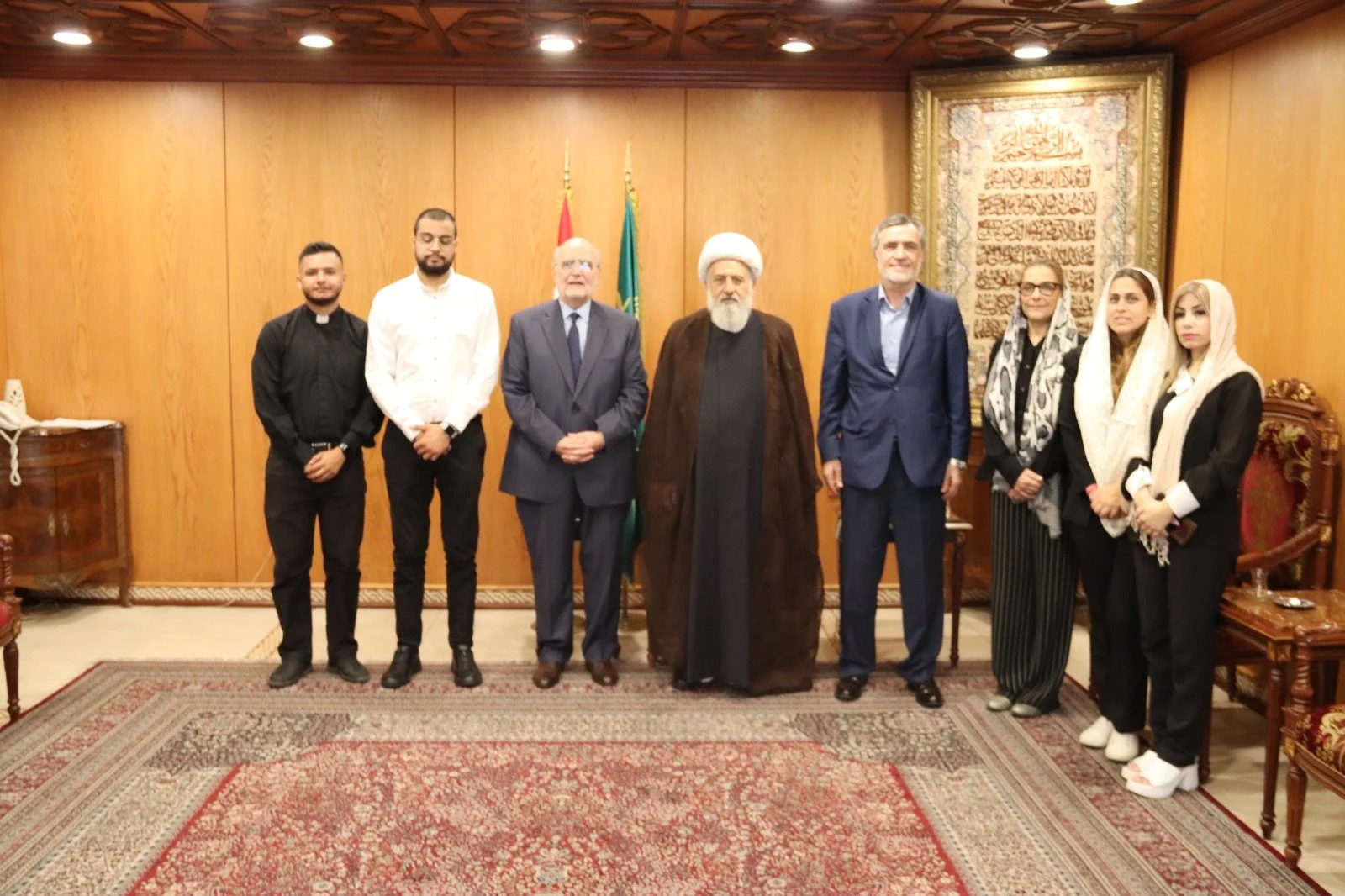استقبل نائب رئيس المجلس الإسلامي الشيعي الأعلى سماحة العلامة الشيخ علي الخطيب، الأمين العام لمجلس كنائس الشرق الأوسط الدكتور ميشال عبس على رأس وفد من مجلس كنائس الشرق الأوسط، يوم الثلاثاء 23 تمّوز/ يوليو 2024، في مقرّ المجلس الإسلامي الشيعي الأعلى في بيروت. وذلك بحضور الدكتور محمّد رزق، مدير عام المجلس الإسلامي الشيعي الأعلى وأمين السرّ الخاصّ بالمجلس، والدكتور غازي قنصو، مستشار سماحة العلامة الشيخ علي الخطيب، وعميد كليّة الدراسات الإسلاميّة في الجامعة الإسلاميّة في لبنان.